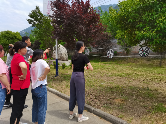看,這蒙著眼睛干什么呢?走進一看,原來是盲人敲鑼。這是兩人一組活動項目,一人指引方向,一人蒙著眼睛在指引下跑向目的地敲響鑼鼓,趣味性十足。